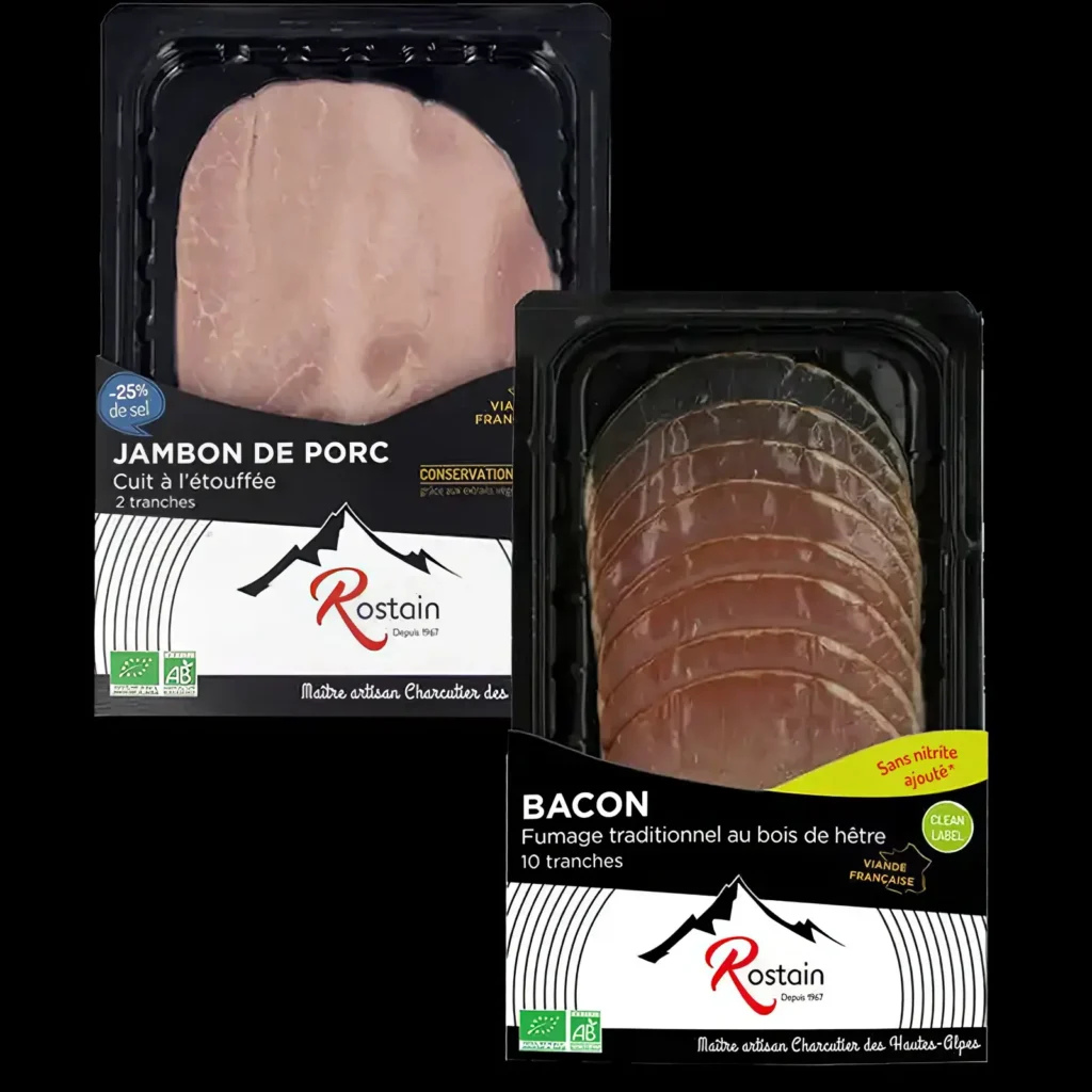 Pionnier de la charcuterie bio, Rostain est notamment reconnue pour avoir été la première marque à proposer un jambon rose sans nitrite ajouté. En 2016, à l’occasion de ses 50 ans, la marque fait appel à STUDIO-NP pour moderniser son image, repenser sa plateforme de marque et concevoir une nouvelle identité visuelle, ainsi que deux nouvelles marques de charcuterie bio.